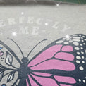 Ein echter Hingucker ist der große Backprint mit Glitzereffekt: ein wunderschöner Schmetterling, der symbolisch für Veränderung, Freiheit und Selbstvertrauen steht. Der Schriftzug „Perfectly Me“ bringt unsere Proud little cloud Philosophie auf den Punkt – jedes Kind ist perfekt, genauso wie es ist. Auf der Brust wurde der Print nochmal in klein aufgebracht. 🌈💖